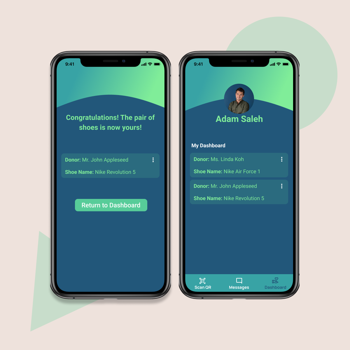 - Dashboard contains history of all the pairs of shoes received from past donors